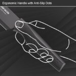 • NON-STICK & ERGONOMIC – The black coating on the blade ensures excellent non-stick and rust-resistant properties for our kitchen knives. Our ergonomic knife handle features anti-slip indented dots to ensure a firm and safe grip.